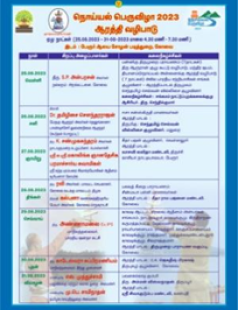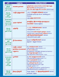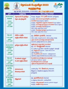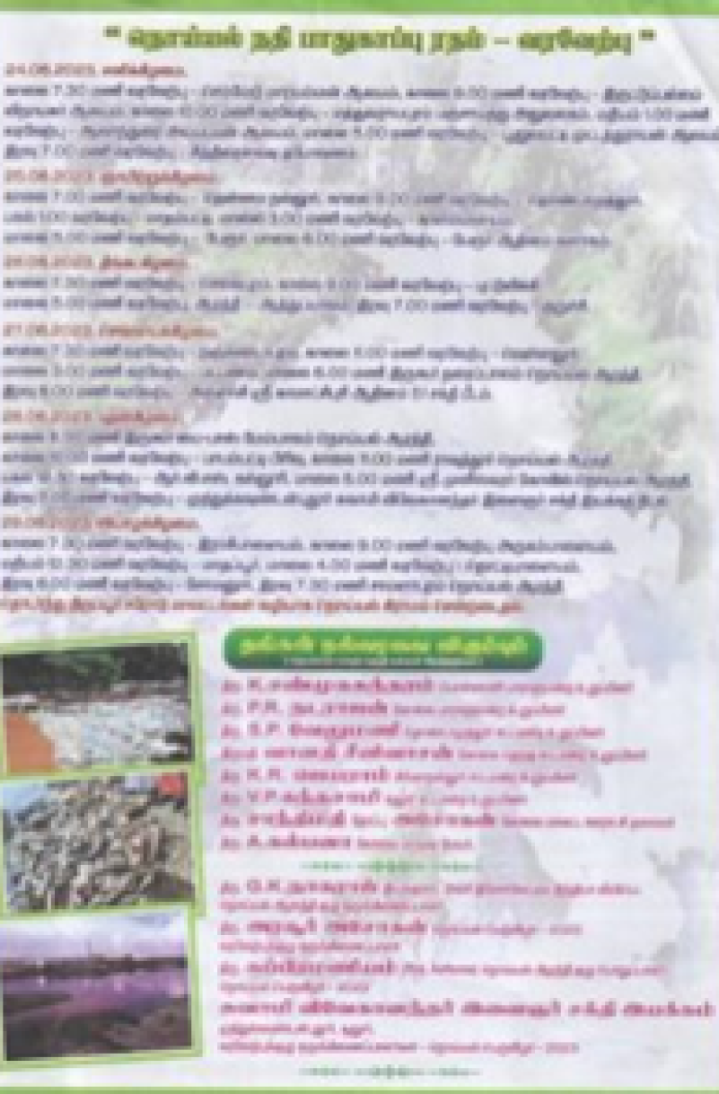 From 25-8-2023 to 31-08-2023, 7days, 12seminars, and Aarti at Cholan Paditurai perur were organized as a part of awareness program. “TamilNadu Governor Honorable R.N RAVI, Telangana and Pondicherry lieutenant Governor Honorable Tamilisai Soundarrajan, Jharkhand Governor C.P Radha Krishnan, TamilNadu Minister Sekar babu, TamilNadu BJP Leader K.Annamalai, Dharmapuri Adheenam, Hindu Munnani Leader Subramaniyam ji, Vanati Srinivasan Coimbatore South MLA” were are the CHIEF GUEST on the entire programs